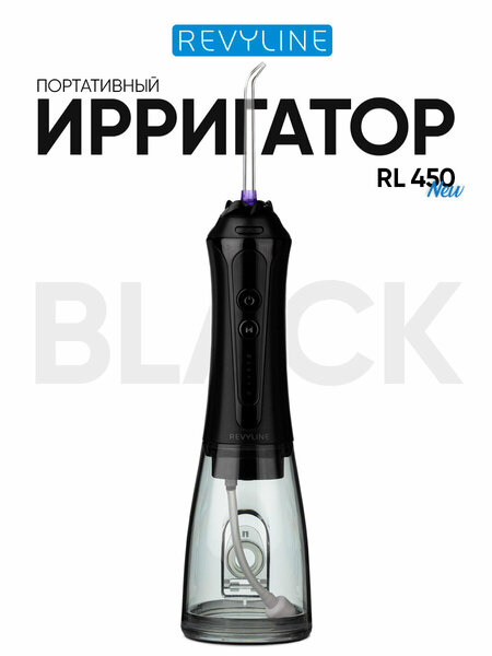 Ирригатор для зубов и десн Revyline RL 450 NEW портативный, черный, мощный, для полости рта, для брекетов, дорожный