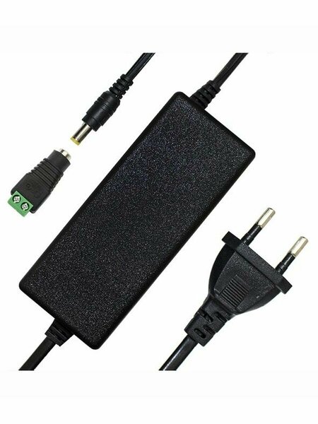 Источник питания стабилизированный 12В, 4А, защита от КЗ, коннектор (клеммная колодка под винт) в комплекте Вилка: Европейский стандарт Входное напряжение: 100 – 240 В АС, 50 - 60 Гц Выходной разъем: 5.5×2.1 мм, DC/150 мм. Коннектор (клеммная колодка под винт) в комплекте Выходное напряжение: 12 В ±5% Ток нагрузки: 4 А Уровень пульсаций: <120 (мВp-p) Линейная модуляция: Не более ±0.5% Температурный коэффициент: ±0.02%/град. С Время запуска: Не более 3 с (240 В AC, нагрузка 100%) Срабатывание защиты: Не более 20 мс (240 В AC, нагрузка 100%) Защита от перегрузки: 115%-200% кВА, авто восстановление Защита от короткого замыкания: 1 канал: авто восстановление Уровень изоляции: 1000В AC/10 мА, 1 MIN Сопротивление изоляции: Не менее 30 МОм, DC 500 В Рабочая температура: 0…+40°С, 10~90% RH Температура хранения: -20…+60°С, 10~90% RH Габариты: 116 × 50 × 31 мм Вес: 265 г