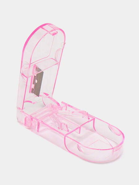 Острое лезвие из нержавеющей стали позволяет легко и аккуратно разрезать таблетку пополам или на четвертинки для точной дозировки.