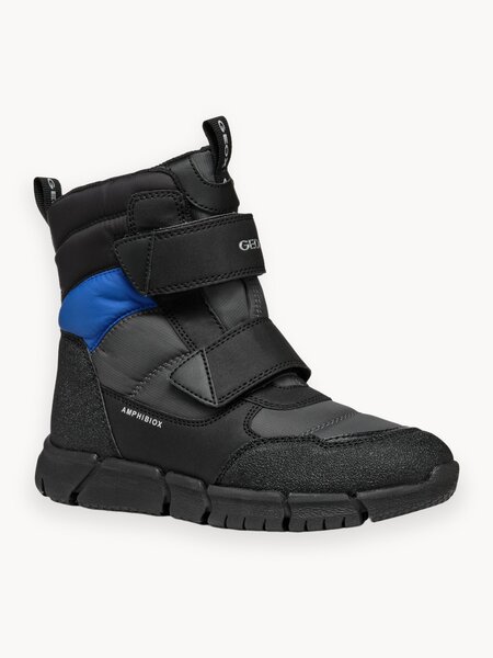 Теплые и непромокаемые полусапожки для мальчиков Flexyper ABX изготовлены из нейлона и искусственной кожи. Эта быстро надевающаяся, легкая и гибкая модель идеальна для зимнего отдыха на свежем воздухе. Полусапоги отличаются стильным дизайном в темно-сером и королевском синим цветах, которые прекрасно подойдут к различным зимним нарядам. Они обеспечивают надежную защиту от влаги и холода благодаря качественным материалам и продуманной конструкции. Модель оснащена удобной подошвой, что способствует отличной амортизации и сцеплению с поверхностью, что особенно важно во время активных игр на снегу или льду. Полусапоги GEOX Flexyper ABX — это идеальный выбор для маленьких исследователей, которые любят проводить время на улице даже в холодное время года.