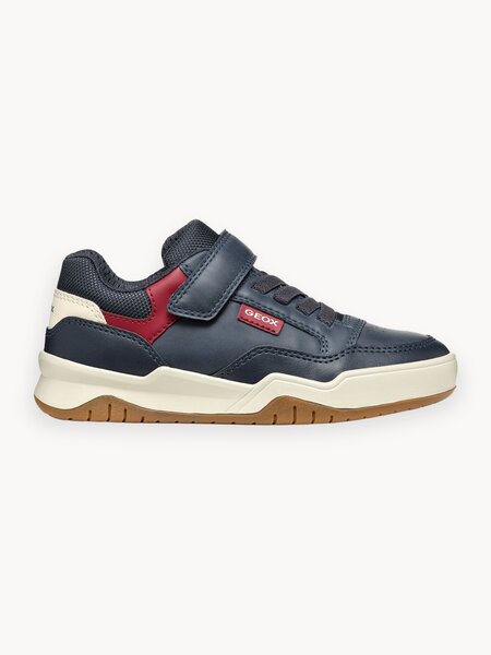 Кроссовки GEOX, размер 40 EU, неви/темно-красный - это идеальный выбор для модного и спортивного стиля. Низкие сникеры Perth для мальчиков — воплощение современного ультрамодного дизайна, идеальный вариант для непринужденных или спортивных образов. Модель из искусственной вощеной кожи и нейлона дополнена не только практичным ремешком на липучке, но и эластичными шнурками, поэтому удобно надевается и надежно удерживает стопу.