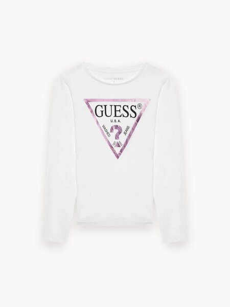 Лонгслив Guess для девочек: стиль и комфорт. Лонгслив Guess для девочек украшен принтом в виде печати. Модель выполнена из 100% хлопка, что обеспечивает комфорт и мягкость на ощупь. Особенности модели включают круглый ворот, длинные рукава и среднюю длину. Лонгслив Guess подходит для всесезонного использования и может быть использован в качестве базового слоя одежды или как самостоятельный элемент гардероба.