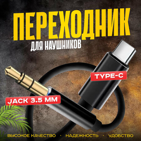 Кабель Aux/ Аудио кабель для наушников Type-c на 3,5 мм jack/ 1 метр черный.