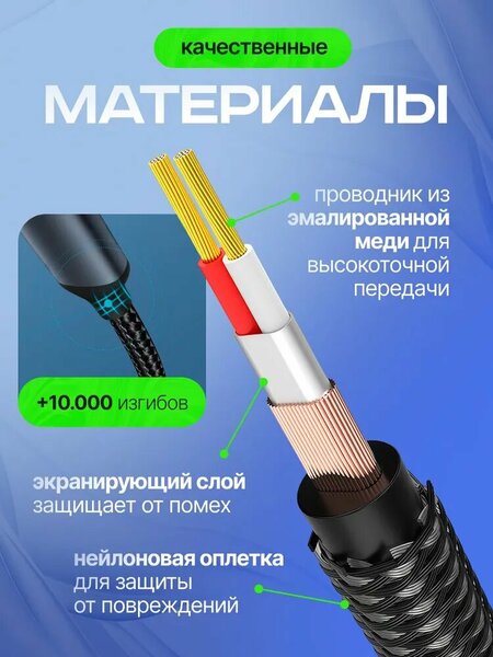 Кабель AUX ESSAGER: функциональность и качество Кабель AUX ESSAGER с Lightning-miniJack разъемом обеспечивает надежное и качественное соединение между устройствами с аудио разъемами 3,5 мм и RCA. Кабель изготовлен из меди, что гарантирует его долговечность и надежность. Нейлоновая оболочка защищает проводники от механических повреждений и обеспечивает дополнительную защиту от внешних воздействий. Кабель оснащен позолоченными контактами, что обеспечивает отличное качество звука и предотвращает окисление. Оплетка из ткани обеспечивает дополнительную защиту кабеля от повреждений и придает ему стильный внешний вид. Кабель ESSAGER сертифицирован по стандартам CE, FCC и RoHS, что подтверждает его безопасность и качество. В упаковке поставляется один кабель длиной 1 метр, что позволяет легко подключить устройства на расстоянии. Выбирая кабель AUX ESSAGER, вы получаете надежный и качественный аксессуар для подключения аудиоустройств с разъемами 3,5 мм и RCA.