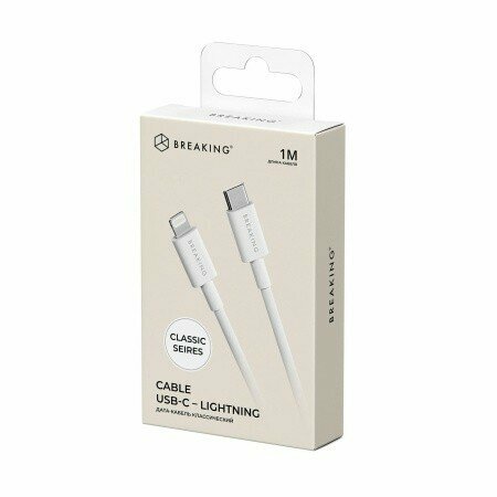 Кабель Breaking Classic Type-C – Lightning 1m – длина 1 метр – разъемы Type-C и Lightning – поддержка быстрой зарядки – передача данных. Отличный кабель для подключения устройств Apple с разъемом Lightning к гаджетам с Type-C. **Прочный оплеточный корпус** защищает от перегибов и продлевает срок службы. **Быстрая зарядка и стабильная передача данных** без потерь скорости. В комплекте: кабель. Гарантия 6 месяцев. Доставка по городу или отправка в другие регионы – обсуждается индивидуально.