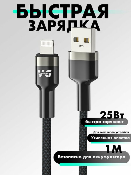 Кабель быстрой зарядки для iPhone, USB - Lightning, iPhone, 25W 3A - это идеальный выбор для тех, кто хочет быстро зарядить свой телефон или планшет. Этот кабель поддерживает стандарт быстрой зарядки Fast Charge 2.0, что позволяет заряжать ваше устройство значительно быстрее, чем обычные кабели.