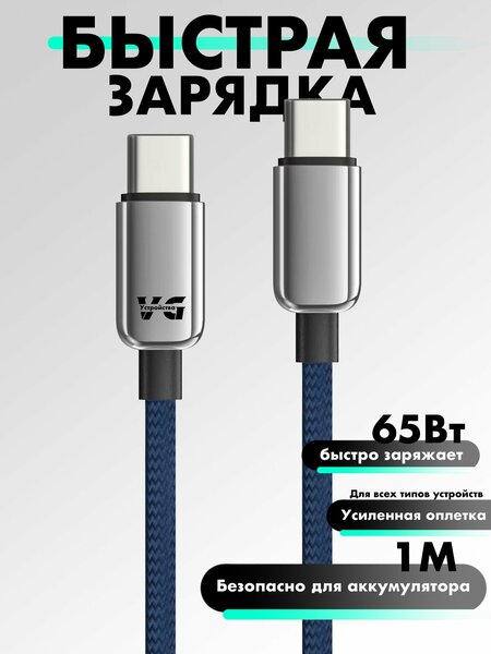 Достоинства:Быстрая зарядка действительно работает, поддерживает 65W. Кабель плотный, разъёмы сидят надёжно, не греется при нагрузке. Недостатки:Существенных недостатков не выявил. Комментарий:Пользуюсь несколько недель для смартфона и ноутбука — заряжает стабильно и быстро. Качество соответствует заявленным характеристикам. К покупке рекомендую.