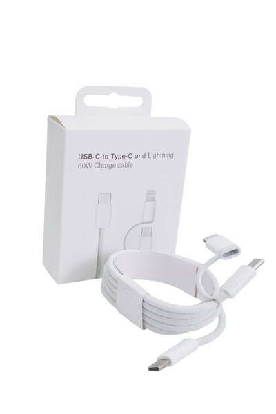 Кабель APPLE USB-C 60W, универсальный 2 в 1, идеален для зарядки и синхронизации, поддержка MFi, тканевая оплетка, высокоскоростная передача данных, долговечный и надежный.