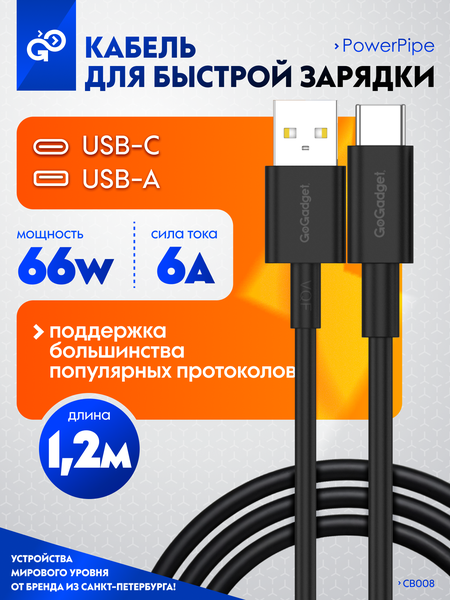 Кабель GoGadget PowerPipe CB008, 66Вт, USB-A / Type-С 1,2 м для быстрой зарядки