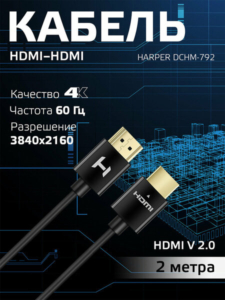 Кабель HDMI 2 метра / HDMI-HDMI / ультра тонкий / 4K Ultra HD hdmi 2.0 / Harper DCHM-792