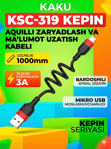 Кабель USB KAKUSIGA KSC-319 Micro USB — это незаменимый аксессуар для зарядки и синхронизации данных ваших устройств. Идеально подходит для смартфонов, планшетов и других гаджетов с разъемом Micro USB. Обеспечивает стабильную и быструю передачу данных, а также эффективную зарядку. Изготовлен из высококачественных материалов, что гарантирует долговечность и устойчивость к износу. Прочная внешняя оплетка защищает кабель от перегибов и повреждений, продлевая срок его службы. Черный цвет придает кабелю стильный и универсальный вид, который отлично впишется в любую среду – будь то дом, офис или автомобиль. KAKUSIGA KSC-319 разработан с учетом современных требований к аксессуарам для мобильных устройств, обеспечивая надежное соединение и минимальные потери энергии. Этот кабель станет вашим верным помощником в повседневной жизни, позволяя всегда оставаться на связи и быстро заряжать свои устройства. Благодаря своей надежности и удобству, KAKUSIGA KSC-319 Micro USB станет отличным выбором для каждого, кто ценит качество и функциональность. Не упустите возможность приобрести этот высокопроизводительный кабель, который обеспечит безупречную работу ваших гаджетов. ✨