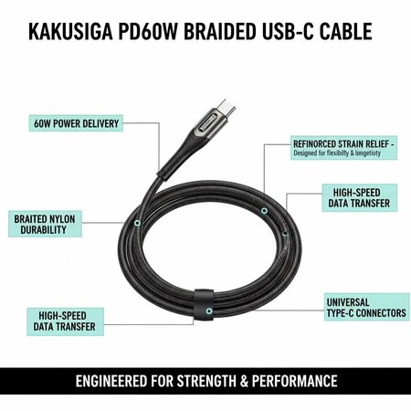 Мощный кабель KAKUSIGA Type-C-Type-C мощностью 60 Вт — идеальное решение для быстрой зарядки и передачи данных. Он изготовлен из прочной плетёной ткани, устойчивой к изгибам и обладающей длительным сроком службы. Он безопасно и быстро заряжает ноутбуки, планшеты и телефоны, обеспечивая мощность передачи до 60 Вт. Разъёмы из алюминиевого сплава обеспечивают высокую термостойкость и надёжное соединение. Быстрая зарядка мощностью 60 Вт Прочный плетёный провод (не ломается и не скручивается) Алюминиевый корпус разъёмов Долговечный срок службы Подходит для ноутбуков, телефонов и планшетов