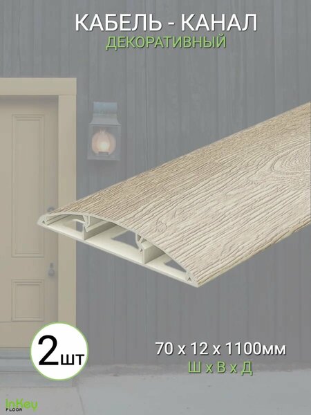 Длина - 1100мм Ширина - 70мм Высота - 12мм комплект - 2 штуки длина 2200мм Кабель-канал декоративный для стен и пола предназначен для организации и защиты кабелей и проводов при их прокладке, а также в качестве декорирования стен и дверных проемов. Он обладает следующими характеристиками: 1. Материал: Кабель-канал изготовлен из высококачественного пластика, который обеспечивает надежное крепление и долговечность. 2. Прочная основа: Кабель-канал имеет прочную основу, что позволяет легко закрепить его на стене или полу с использованием дополнительных инструментов или крепежных элементов. 3. Универсальность: Кабель-канал может использоваться как на стенах, так и на полу, обеспечивая удобство монтажа и гибкость в применении. 4. Защита проводов: Кабель-канал предназначен для защиты проводов от повреждений, перегибов и провисаний, что способствует сохранению их функциональности и привлекательного внешнего вида. А так же обеспечивает легкий доступ к проводам. 5. Эстетичный дизайн: Кабель-канал имеет элегантный и нейтральный дизайн, который позволяет его гармонично вписать в интерьер комнаты. 6. Легкость использования: Благодаря удобному размеру и конструкции, кабель-канал обладает простым и быстрым монтажом, что делает его идеальным выбором для домашнего использования или в офисных помещениях. Кабель-канал универсальный декоративный для стен и пола обеспечивает эффективную и аккуратную организацию кабелей и проводов, что делает его оптимальным решением для различных применений.