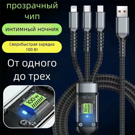 Универсальный провод для телефонов 3 в 1 предназначен для синхронизации и быстрого заряда различных устройств с типами входа. Аксессуар совместим с большинством гаджетов на платформе айОС и Андроид. Можно одновременно заряжать два устройства с током заряда 1 ампер. Устройство разработано для самых популярных разъемов на данный момент: микро ЮСБ - наиболее актуальный тип входа для практически всех смартфонов и похожих гаджетов, ЮСБ Тайп С - новой разъем, который сейчас используют в большинстве флагманских смартфонах, Лайтфинг - коннектор, уникальный разъем для современной продукции Эпл, таких как Айпад, Айфон, Эпл Вотч. Универсальный зарядный провод отличное решение, если у вас в семье несколько разных телефонов или к вам часто приходят гости. Кабель для зарядки 3 в 1 (Lightning, Type-C, Micro Usb) на айфон андройд Тип: кабель зарядный Разъем подключения: Type-C. Micro-Usb. lightning Входной разъем: USB Пропускной ток: 2A Материал оболочки: ПВХ + нейлон + алюминиевый сплав Кабель для зарядки 3 в 1 lightning iphone micro usb type c, 120 см длинной. Кабель для зарядки и его разъёмы прошли тестирование на прочность. Провод соответствует техническим требованиям и правилам безопасности. Кабель для зарядки обеспечит стабильную и качественную зарядку телефона.