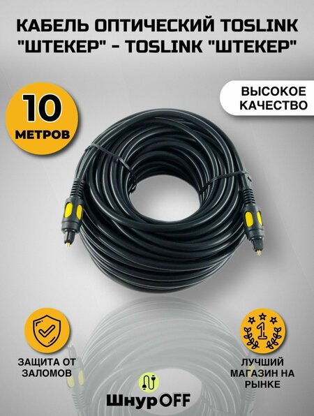 Оптические аудио-кабели TosLink – это оптоволоконные кабели, которые применяются для звуковых устройств и передачи многоканального звука. Оптический разъем для TosLink кабелей часто встречается в телевизорах и домашних кинотеатрах, а также в колонках среднего и высшего ценового диапазона, включая многоканальные акустические системы. Длина кабеля 10.0 метров