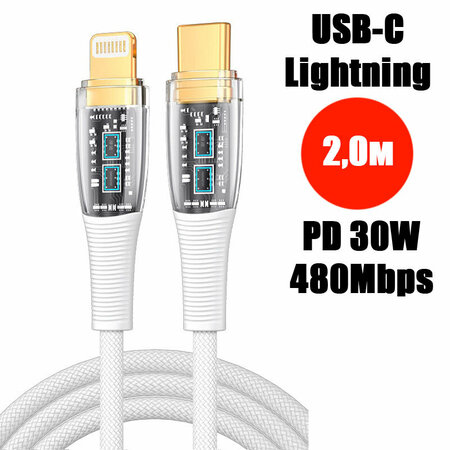 Кабель PALMEXX USB-C to Lightning, PD 30W, длина 2.0м, белый