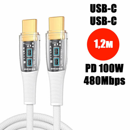 Кабель PALMEXX USB-C to USB-C, PD 100W, длина 1.2м, белый
