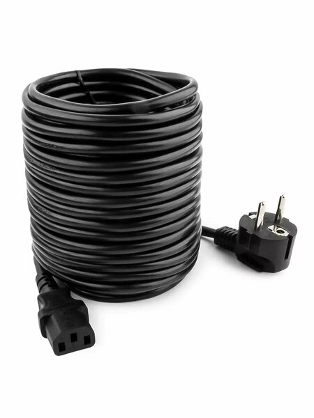 Кабель питания Cablexpert PC-186-VDE-10M, Schuko-C13, VDE, 3х0.75мм2, 10А, с заземлением, 10м, черный, пакет. Номинальное напряжение: 220 B. Сечение кабеля: 3х0.75 мм².