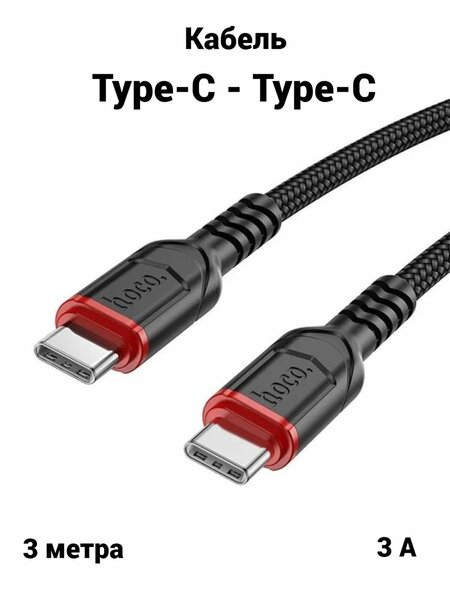 Кабель зарядка Hoco Type-C Type-С для телефона планшета / провод зарядка для Android, Apple, (iPhone 15-17) 3м, 3А