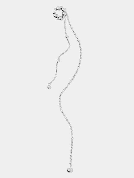 Минималистичный кафф из чередующихся сфер разного диаметра. Композицию дополняют две струящиеся подвески из цепи тонкого плетения. Простая конструкция подходит для повседневных образов и легко сочетается с другими украшениями. Гибкая основа каффа адаптируется под любой размер ушной раковины и крепко фиксируется на любом ухе. Материал: сталь Размер каффа: универсальный Диаметр сфер: 3 и 5 мм Длины подвесок: 10 и 20 см В целях сохранности украшения - протирать сухой салфеткой после использования. Избегайте попадания бытовой химии на изделия. Украшение поставляется в фирменной упаковке из плотного картона с атласным мешком-пыльником, в котором можно хранить изделие на протяжении всего срока эксплуатации.