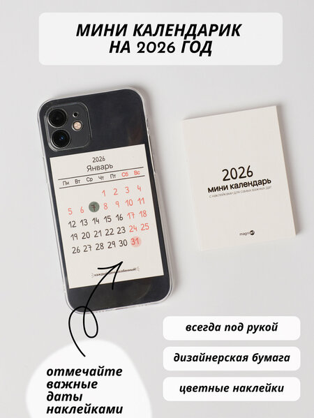Наш мини календарь на 2026 года - это идеальное решение для людей, которые ценят стиль и минимализм. В изготовлении календарика мы использовали высококачественную и необычную дизайнерскую бумагу. Компактный размер календаря позволяет вам легко использовать его вместе с чехлом для телефона, или вклеить в свой планер/ежедневник. Кроме того, в комплекте прилагаются цветные наклейки, с помощью которых вы можете выделять важные даты. И таким образом создавать свой неповторимый стиль. В таком виде календарь на обратной стороне телефона под чехлом, не позволит вам забыть ни одно важное событие или дело! Оставляйте заметки на оборотной стороне, чтобы не забыть какое конкретно событие вы запланировали на ту или иную дату. Этот календарь - отличный выбор для людей, которые хотят вести активный и организованный образ жизни. Это отличное дополнение к вашей канцелярии. Мы уверены вы полюбите этот календарь и он будет очень полезным помощником каждый день. Календарь можно использовать с любыми чехлами на телефон, которые больше чем 6,5 см по ширине. Это почти все современные смартфоны. На фотографиях изображен iPhone 15 pro.