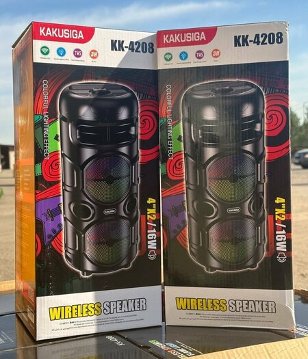 KAKUSIGA KK-4208 – Мир Музыки в Ваших Руках! Совмещение стильного дизайна и мощного звука делает колонку KAKUSIGA KK-4208 идеальным спутником для любых вечеринок, выездов на природу или домашних тусовок. Она оснащена: ✨ Цветной светодиодной подсветкой – создаёт эффектное визуальное сопровождение в такт музыке. Долговечным аккумулятором – до 3 часов непрерывной работы без подзарядки. Поддержкой Wi-Fi, TWS и Bluetooth – для удобного и стабильного подключения к любому устройству. 4 мощными динамиками (2 x 4” + 2 x 1.6”) – обеспечивают глубокие басы и чистое звучание, как на живом концерте. Функцией караоке и микрофоном – для весёлых развлечений в компании друзей. Стильная и продуманная упаковка делает её отличным подарком! Если вы цените высокое качество звука и современный дизайн, KAKUSIGA KK-4208 — это именно то, что вам нужно!