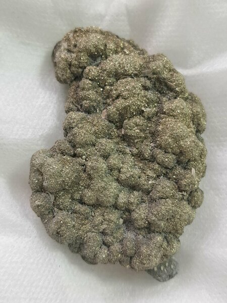 Пирит. Месторождение Северный Кавказ, размер 6х4х1.5 см. Минерал пирит получил свое название от греческого слова «пирос» — «огонь», что было связано с его способностью высекать искры при ударе. Раньше данный минерал часто путали с золотом, отсюда и его другие названия : "золото Инков", "золото дураков", "ложное золото". Минерал пирит образует кубические, пентагон-додекаэдрические, реже октаэдрические кристаллы. Иногда на гранях кристаллов пирита присутствует грубая штриховка. Характерны сростки кристаллов. Чаще всего пирит встречается в виде сплошных зернистых агрегатов, радиально-лучистые агрегатов, сферолитов, почковидных и дисковидных образований. И куда же без магических свойств: магические свойства пирита известны с древних времен. Еще средневековые алхимики считали, что этот минерал можно превратить в золото. Современные эзотерики применяют камень как защитный талисман для людей опасных профессий, связанных с риском, например, пожарных, военных, кузнецов и строителей. Колдуны нередко используют магические свойства пирита для восстановления своих жизненных сил после проведения магических ритуалов и колдовских обрядов. В камне допускается присутствие естественных природных неровностей и включений.