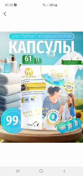 Стирка для 61 шт оригинал капсула Капсулы для стирки 3в1: многофункциональность и эффективность Многофункциональность и эффективность Капсулы для стирки 3в1 представляют собой уникальное сочетание трех средств для стирки: капсул, геля и порошка. Они обеспечивают глубокую и эффективную очистку одежды, при этом не требуют дополнительного использования кондиционера и ароматизатора. Отбеливатель и кондиционер в одном продукте Особенностью капсул является наличие в их составе отбеливателя и кондиционера. Это позволяет не только эффективно отстирывать загрязнения, но и заботиться о состоянии ткани, делая ее мягкой и приятной на ощупь. Ароматизатор для свежести и приятного запаха Капсулы также содержат ароматизатор, который придает одежде свежий и приятный аромат. Это делает процесс стирки не только эффективным, но и приятным, создавая ощущение свежести и чистоты. Капсулы для стирки 3в1 – это удобный и практичный выбор для тех, кто ценит качество и эффективность. Они позволяют экономить время и средства, обеспечивая при этом безупречное качество стирки и ухода за одеждой. Показать полностью Основные характеристики Количество упаковок 10 упаковок по 10 штук Тип капсулы для стирки Аромат океан Назначение для детского белья, для джинсовых тканей, для замачивания, для компрессионного трикотажа, для нижнего белья, для пуховиков, для синтетических тканей, для спортивной одежды, для стойких загрязнений, для хлопковых тканей, для цветных тканей, универсальное Вид стирки машинная Эффект отбеливание, придание мягкости Вес 190 г Количество стирок 61 шт. Состав Содержит кондиционер, отбеливатель Не содержит эдта, анионные ПАВ, хлор Дополнительно Срок годности 3 лет, Срок годности: 3 года с даты производства