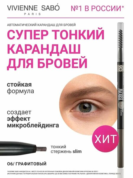 Карандаш для бровей Vivienne Sabo Brow Arcade, автоматический, стойкая текстура, тонкий стержень slim и щёточка-расчёска. С ним вы создадите роскошные брови в два счета. В палитре - натуральные оттенки для естественного образа. С одной стороны карандаша - тонкий стержень, которым удобно корректировать форму бровей, делать их насыщенными и заполнять пустоты между волосками. С другой стороны - щеточка, чтобы расчесать брови и растушевать цвет. В составе средства - натуральные воски для стойкого образа. Текстура наносится мягко, не травмирует кожу, не размазывается и не тускнеет. В коллекции есть карандаши в нескольких оттенках: от графитового до коричневого. Способ применения: Прорисовывайте короткие линии по направлению роста волосков от переносицы к вискам. Не нажимайте слишком сильно. В конце расчешите брови и растушуйте цвет щеточкой.