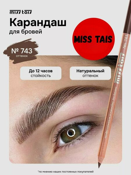 Карандаш для бровей и глаз Miss Tais, стойкий, гипоаллергенный, деревянный, цвет 743