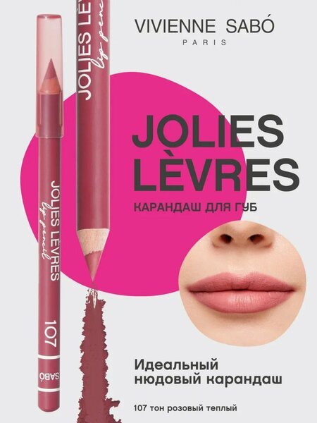 Карандаш для губ "Jolies Levres" от Vivienne Sabo — это классика и настоящий бестселлер марки. Благодаря мягкой, но устойчивой текстуре, он позволяет создать идеальный контур, который не растекается и сохраняет четкость в течение всего дня. Тон 107 — один из самых популярных оттенков в палитре (натуральный пыльно-розовый с холодным подтоном), который идеально подходит для создания естественного макияжа и визуального увеличения объема губ.