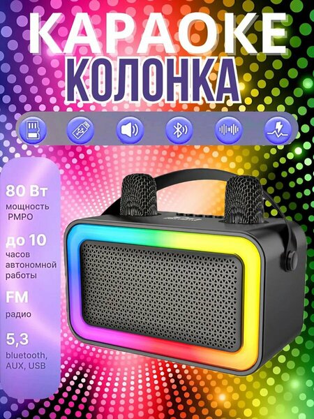 Караоке колонка Bluetooth с микрофонами, RGB подсветкой и FM радио — это универсальное решение для прослушивания музыки, проведения вечеринок и веселого отдыха в кругу друзей и семьи. Современный дизайн, мощный и чистый звук, удобное управление и широкий набор функций делают эту колонку отличным выбором для дома, дачи, поездок и праздников. Благодаря Bluetooth соединению колонка быстро и стабильно подключается к смартфонам, планшетам, ноутбукам и другим устройствам.