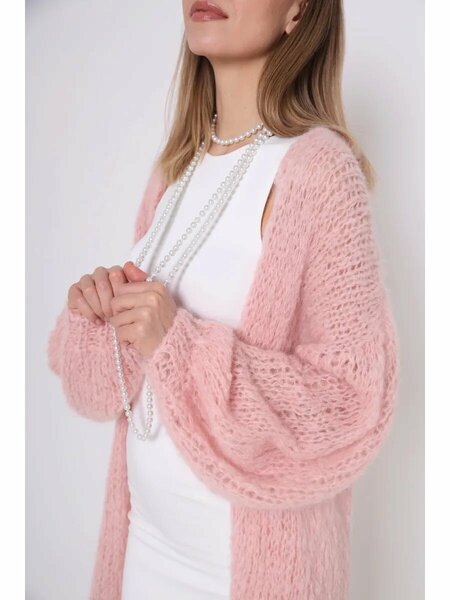 Мохеровый кардиган-паутинка оверсайз ручной вязки выполнен из пряжи премиального качества итальянского производства с составом 44% кид мохер, 44% альпака, 12% меринос. Кид мохер – мягкий и очень теплый пух ангорских козочек возрастом до двух лет, такая паутинка подходит даже людям с чувствительной кожей. Альпака - шерсть ламы, гипоаллергенная и очень мягкая. Нежно-розовый цвет удачно вписывается в любой гардероб, а кардиган-паутинка уже не первый год - это мастхэв в гардеробе, так как при своей легкости отлично согревает зимой, а в качестве накидки подойдет в прохладный летний день и смотрится выгодно в разных комбинациях. Стирать такой кардиган нужно только вручную - иначе тонкие волоски могут скататься, а изделие даст большую усадку. Ручная стирка гарантирует то, что оно не изменится. Стирать пуловер нужно в прохладной воде со специальным средством для шерстяных вещей или с шампунем для волос. Стиральный порошок категорически не подходит - он забивает волоски кид мохера и не вымывается до конца. Прополоскать вещь нужно в большом количестве воды. Возможен отжим в стиральной машине, но не больше, чем на 500 оборотах - иначе вещь можно испортить! Сушить изделие нужно в горизонтальном положении, разложив на сушилке поверх какой-то тонкой ткани - чтобы не осталось заломов от сушилки. После изготовления все вещи мы бережно стираем, и они приезжают к покупателям готовыми к эксплуатации, к тому же это избавит от неприятных сюрпризов – будучи уже постиранной изделие не даст усадки и не растянется. Рост модели на фото 170 см. Длина кардигана по спинке 105 см.