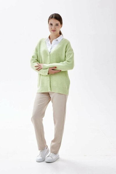 Мягкий уютный кардиган с V-образным вырезом и застежкой на обтяжные пуговицы в тон. Свободный крой и прямые длинные рукава помогут скорректировать силуэт фигуры и прибавят комфорта в движениях. Отличный вариант для сочетания в повседневных и офисных образах.