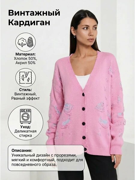 Стильный удлиненный кардиган от DOMMOD станет идеальным дополнением к вашему гардеробу. Модель выполнена из мягкой и приятной к телу смеси акрила и хлопка, что обеспечивает комфорт в носке. Оригинальный дизайн с рваными элементами и пуговичной застежкой придает кардигану неповторимый шарм. Розовый цвет добавит в ваш образ яркости и женственности. Этот кардиган прекрасно подойдет как для повседневных прогулок, так и для создания стильных образов на вечер.