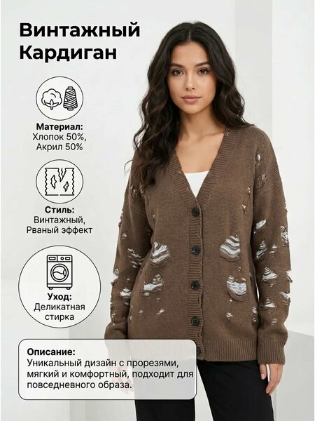 Стильный удлиненный кардиган от DOMMOD станет идеальным дополнением к вашему гардеробу. Модель выполнена из мягкой и приятной к телу смеси акрила и хлопка, что обеспечивает комфорт в носке. Оригинальный дизайн с рваными элементами и пуговичной застежкой придает кардигану неповторимый шарм. Коричневый цвет добавит в ваш образ яркости и женственности. Этот кардиган прекрасно подойдет как для повседневных прогулок, так и для создания стильных образов на вечер.