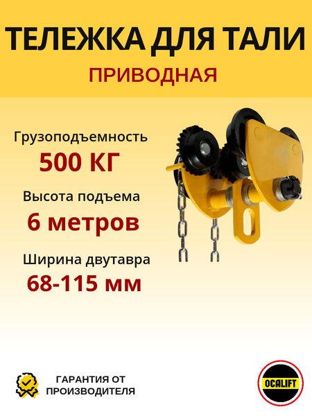 Каретка ручная для тали 500кг 6м тип GCL тележка на двутавр с ручным приводом