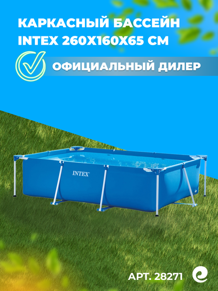 Форма: Прямоугольник . Длина бассейна: 260 см. Ширина бассейна: 160 см. Глубина бассейна: 65 см. Объем: 2.282 куб. м. Конструкция: Каркасный . Установка: Наземный . Фильтр: Нет . Хлоргенератор: Нет . Скиммер: Нет . Лестница: Нет . *Бассейн с боковыми стойками. Размеры указаны для чаши бассейна, без учета боковых стоек. Описание: Intex Rectangular Frame - серия небольших каркасных бассейнов, которые достаточно быстро и легко устанавливаются, при этом не требуются какие-либо дополнительные инструменты. Время от сборки бассейна до заполнения его водой около 30 минут. Бассейны Rectangular Frame изготавливаются из высококачественного синего ПВХ. Бассейн INTEX Rectangular Frame 28271 лучшее приобретение для прекрасного времяпрепровождения и замечательного отдыха. При производстве используется технология Super-Touch (сочетание винила с полиэстером), наделяющая материал тройной прочностью, устойчивостью к ударам, воздействию солнечных лучей, растягиванию и стиранию. Отличительной особенностью серии является небольшой объем и надежность каркасной конструкции. Для установки бассейна не требуется подготовка грунта.