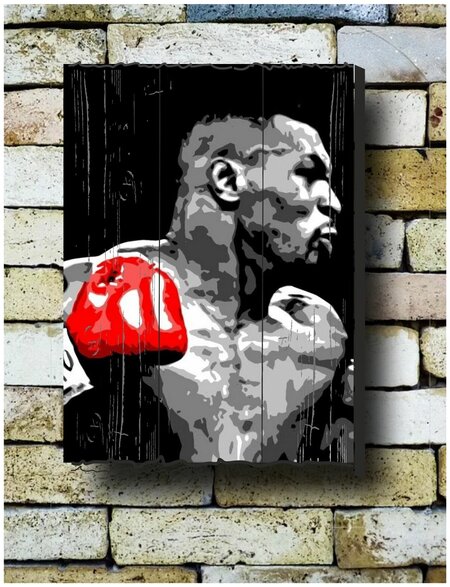 Картина на досках 'Бокс. Майк Тайсон 1' Лучший подарок для настоящего ценителя. Картина на доске – прекрасный, инновационный продукт, который пришел к нам с солнечных пляжей Калифорнии, где креативные художники разрисовывали «floating wood» - дерево, принесенное морем. Естественно состаренное и брошюрованное дерево имеет собственную структуру волокон, что придает уникальность каждому изделию. Картина кажется «живой» и объемной (4 см от стены!). С течением времени разница с быстро пылящейся и выцветающей бумагой очевидна!