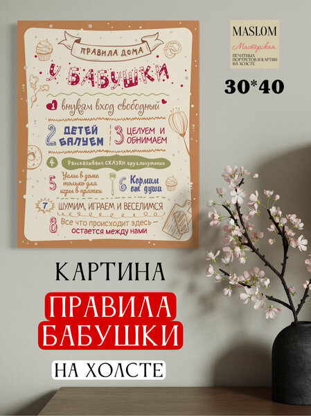 Картина "Правила бабушки", на холсте, 30*40 см, А3 формат, в подарок