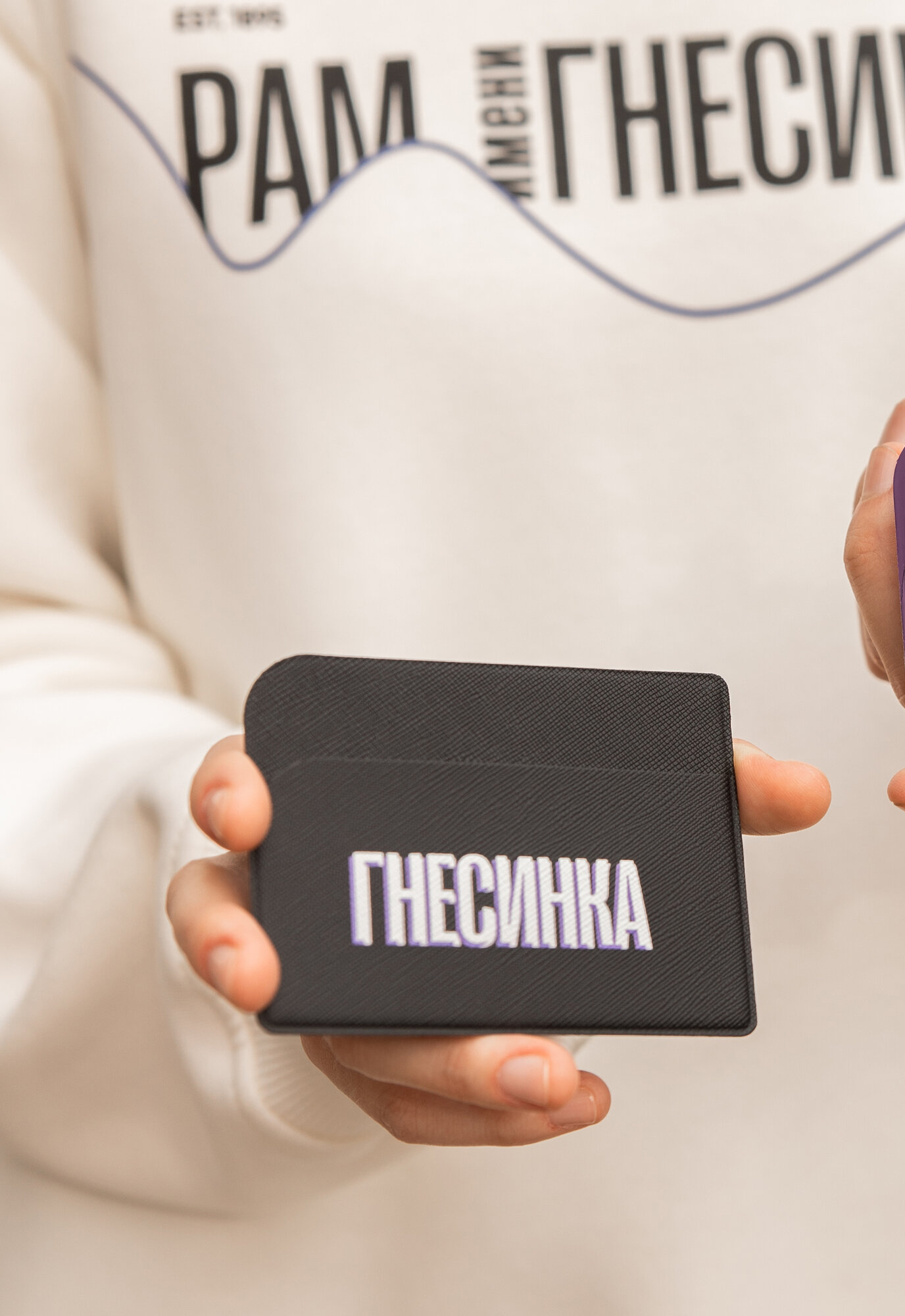 Картхолдер РАМ имени Гнесиных: стиль и функциональность Картхолдер РАМ имени Гнесиных представляет собой стильное и практичное решение для хранения кредитных карт, визиток и пропусков. Изготовленный из высококачественного ПВХ, он обеспечивает долговечность и надежность использования. Картхолдер оснащен тремя карманами, что позволяет удобно разместить кредитные карты, визитки и пропуска стандартного размера. Картхолдер выполнен в черном (зернистая поверхность) или фиолетовом (гладкая поверхность) цвете с надписью "Гнесинка". Картхолдер имеет размеры 7.5х10 см, что делает его компактным и удобным для ношения в кармане или сумке. Выбирая картхолдер РАМ имени Гнесиных, вы получаете стильный и функциональный аксессуар, который поможет вам всегда иметь под рукой необходимые документы и карты.