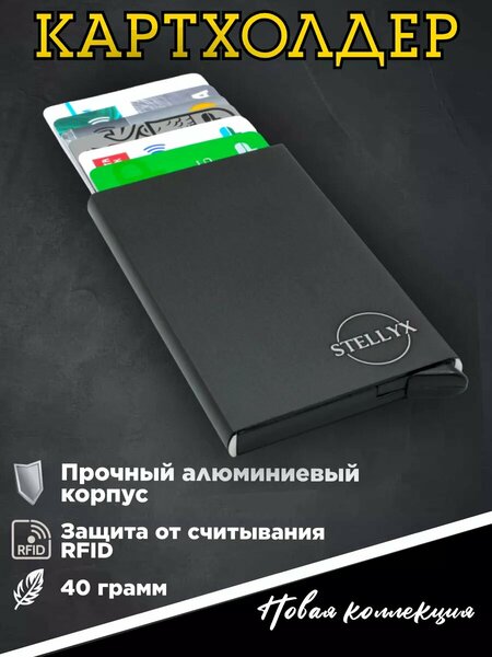 Ищете стильный и функциональный аксессуар для хранения ваших карт и документов? Представляем вам картхолдер для карт с RFID защитой! Этот уникальный аксессуар станет незаменимым помощником в организации вашей финансовой жизни и защите ваших личных данных. Картхолдер – это компактное и удобное решение для хранения ваших банковских карт, визиток, пропусков и других документов. Благодаря своему компактному размеру, он поместится даже в самый маленький карман или сумку. Женский или мужской, черный или красный – у нас есть идеальный вариант для каждого. Особенностью нашего картхолдера является наличие RFID защиты. RFID технология используется в большинстве карт, идентификационных пропусков и документов. Однако, она также может быть использована злоумышленниками для несанкционированного считывания и кражи ваших личных данных. Наш картхолдер с RFID защитой блокирует такие попытки, обеспечивая максимальную безопасность ваших данных от несанкционированного считывания и кражи денежных средств (блокировка RFID и NFC сигнала). Визитница для карт лёгкая и в тоже время прочная, благодаря корпусу из алюминиевого сплава, что обеспечивает долговечность и надежность использования. Стильный дизайн и высокое качество исполнения делают ее отличным аксессуаром для бизнес-встреч, путешествий или просто повседневного использования. Удобный веерный механизм картхолдера. При нажатии на рычаг карты подаются ступенчато, что позволяет быстро найти необходимую. Карты внутри держатся плотно, из визитницы самостоятельно не выпадают. Картхолдер позволяет вместить в себя до 6 карт, что делает его очень практичным! Банковские и иные карты всегда будут при Вас. Картхолдер станет отличным подарком на день рождения, годовщину, юбилей, 8 марта, 23 февраля, новый год или любой другой праздник. Не упустите возможность приобрести этот функциональный и стильный аксессуар. Закажите картхолдер прямо сейчас и обезопасьте свои личные данные от несанкционированного доступа.