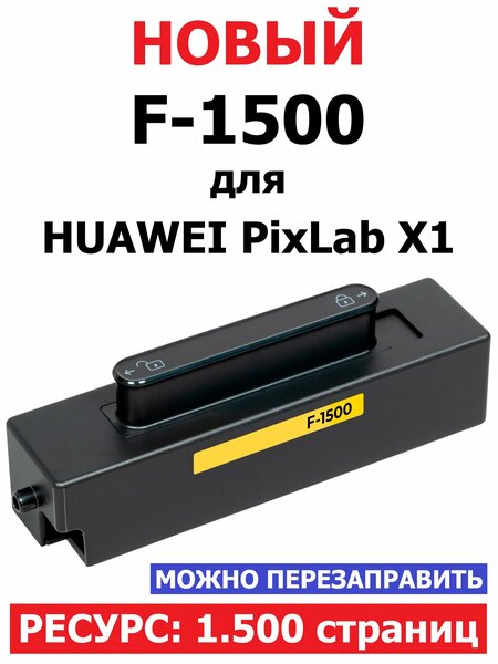 Картридж F-1500 для HUAWEI PixLab X1. Новый, заполненный, запечатанный, в фирменной упаковке. Качественный аналог F1500 от надежного производителя совместимых расходных материалов - булат. Готов к работе на все 100%. Вам достаточно его распаковать и удалить защитную ленточку с тонерного отсека. Ресурс: 1.500 страниц при 5% заполняемости листа формата А4, а когда закончится - его можно несколько раз заправить (у него есть шестерня для подмеса тонера и пробка для засыпки). Гарантия: 3 года. Срок хранения в упаковке: не ограничен