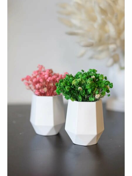 Настольные кашпо с со стабилизированной гипсофилой — прекрасный способ добавить в ваш интерьер нежный и изящный штрих. Эти милые кашпо станут очаровательным украшением для подоконников, полок, столов и других поверхностей. Гипсофила, выполненная из качественных материалов, выглядит реалистично и не требует ухода, сохраняя свою красоту надолго. Кашпо доступны в белом цвете , что позволяет сдлеать любой интерьер более цветущим. Идеальный вариант для подарка: маме, подруге, любимой, коллеге или учителю, воспитателю. С таким подарком вы точно угадаете, благодаря стбилизации, такой декор будет радовать долгие 5-7 лет. Цветы подходят и для аллергиков, так как на них нет пыльцы. Высота стаканчиков 7,5см.