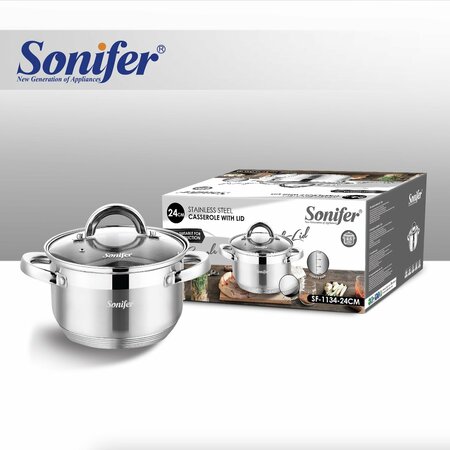 Кастрюля SONIFER объемом 6.5 литров и диаметром 24 см - это незаменимый помощник на вашей кухне. Она изготовлена из высококачественной стали, что гарантирует долговечность и надежность в использовании. Кастрюля оснащена крышкой, что позволяет сохранить аромат и вкус блюда, а также предотвращает разбрызгивание при приготовлении пищи. Особенностью данной модели является возможность мытья в посудомоечной машине. Это значительно упрощает процесс уборки и экономит ваше время. Кастрюля SONIFER подходит для всех видов плит, включая индукционные. Это значит, что вы сможете использовать ее на любой варочной поверхности, будь то газовая, электрическая или индукционная плита. Выбирая кастрюлю SONIFER, вы получаете качественный и надежный продукт, который станет незаменимым помощником на вашей кухне.