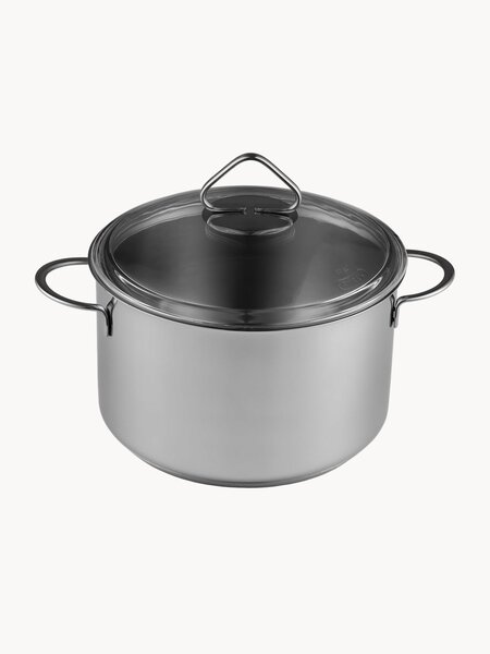 трехслойное теплораспределительное дно (сталь-алюминий-сталь); материал крышки: стекло; материал ручек: сталь, крепление ручек: точечная сварка; ГОСТ 27002-86; марка стали: AISI 304