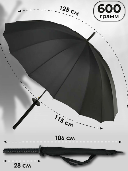 Новая модель зонт мужской катана имеет эстетичный дизайн и придётся по нраву всем поклонникам Японии и японской культуры аниме, мужчинам и женщинам, мальчику и девочке. Зонт полуавтомат имеет усиленный металлический каркас из 16 стальных спиц, антикоррозийное покрытие, купол 100см из материала PONGE, эпонж. Тип зонта: трость Механизм зонта: полуавтомат Диаметр купола зонта: 100 см Длина зонта в сложенном виде: 106 см Материал ручки зонта: металл; пластик Вес зонта: (от 301 до 500 гр) Водоотталкивающий; Система антиветер