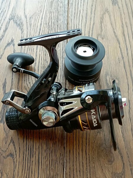 Катушка с байтраннером KW 4000 Kaida Передаточное число 5.2:1 вес 380 гр Количество подшипников 6+1 Лесоемкость 0,3/175, 0,35/130, 0,4/100 м Устройство тормоза обратного хода безынерционной катушки создано с той целью, чтобы суметь извлечь из водоема крупную рыбу тонкой оснасткой за счет спуска лески при резком увеличении нагрузки. Суть действия фрикциона заключается в том, что он с помощью специального регулятора подстраивается на заданное усилие. Например, если нить способна выдержать 8 килограммов, то тормоз выставляют на 5-6 кг. Когда подсеченная рыбина сделает резкий рывок, превышающий разрывную способность лески, она останется целой. Леска в этом случае начнет стравливаться под воздействием нагрузки, так как сработает фрикционный тормоз. Расположение спереди. Подобное месторасположение регулировочного винта и тормоза считается классическим, при этом вся конструкция выполнена на шпуле. Когда идет замена шпули, меняется и тормозной механизм. Такие безынерционки принято считать скоростными, поскольку они рассчитаны на применение лески с небольшим сечением и малую нагрузку. Этот тип фрикционного тормоза регулируется очень тонко, за щелчок усилие меняется на 200-300 г. Один из наиболее именитых и популярных китайских брендов Kaida считается одним из лидеров отечественного рынка в сегменте бюджетных рыболовных катушек. Несмотря на свою весьма недорогую цену катушки Кайда являются отличным вариантом для начинающих рыболовов, а так же для тех, кто не готов тратить излишние деньги на приобретение катушек именитых и весьма дорогих брендов.