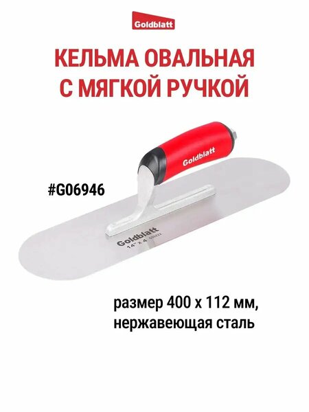 Кельмы строительные с мягкой ручкой GOLDBLATT G06949 и GOLDBLATT G06222 . Кельма предназначена для финишных работ, нанесения и выравнивания декоративной штукатурки, жидких обоев, раствора или плиточного клея. Пластиковая эргономичная рукоятка, полотно из качественной стали. Строительные инструменты GOLDBLATT высоко зарекомендовали себя среди профессиональных строителей США и Европы. В ассортименте GOLDBLATT можно найти: шпатель строительный, кельма, тёрка для различных текстур, мастерок для кирпича, мастерок для плитки, шпатель фасадный, молоток каменщика, пила для гипрока и многое другое. Кельма овальная для бетона (без ручки) GOLDBLATT G06970. Кельма с закругленным концом устраняет следы и выемки для идеальной отделки. Лезвие изготовлено из толстой высокоуглеродистой стали, а его закругленные на 360 градусов кромки обеспечивают повышенную гибкость при работе под любым углом. Заклепочное стальное крепление для высокой прочности и долговечности.