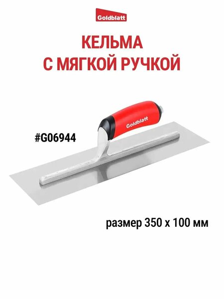 Кельма строительная с мягкой ручкой GOLDBLATT G06942, G06113, G06941, G06944, G03463, G06943 и G06945. Кельма предназначена для финишных работ, нанесения и выравнивания декоративной штукатурки, жидких обоев, раствора или плиточного клея. Пластиковая эргономичная рукоятка, полотно из качественной стали. Строительные инструменты GOLDBLATT высоко зарекомендовали себя среди профессиональных строителей США и Европы. В ассортименте GOLDBLATT можно найти: шпатель строительный, кельма, тёрка для различных текстур, мастерок для кирпича, мастерок для плитки, шпатель фасадный, молоток каменщика, пила для гипрока и многое другое. Размер: 350х100 мм